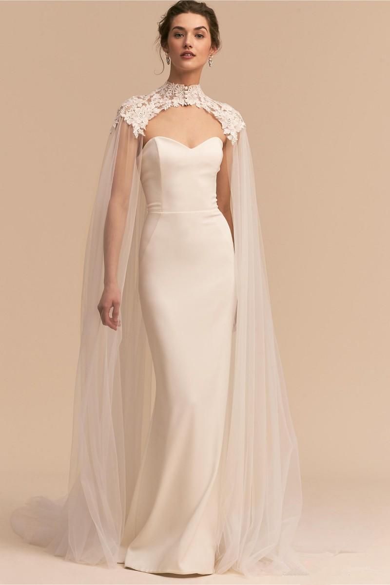 Acheter Dentelle Tulle De Mariage De Mariee Cape Col Haut Longue