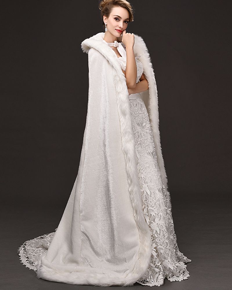 Hiver Femmes De Mariee De Luxe En Fourrure De Mariage A Capuche