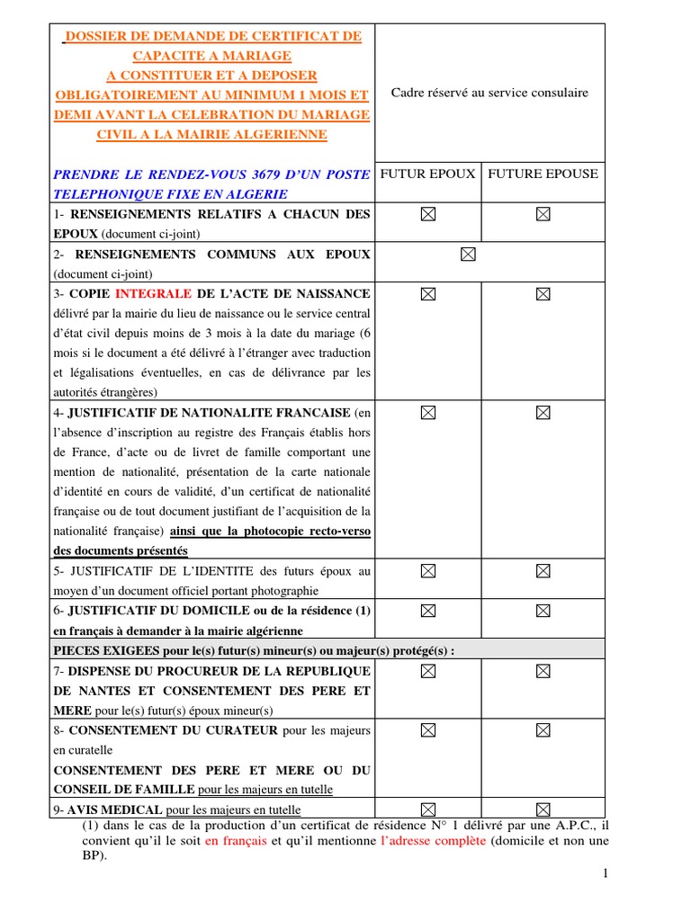 Certificat Capacite Mariage Algerie