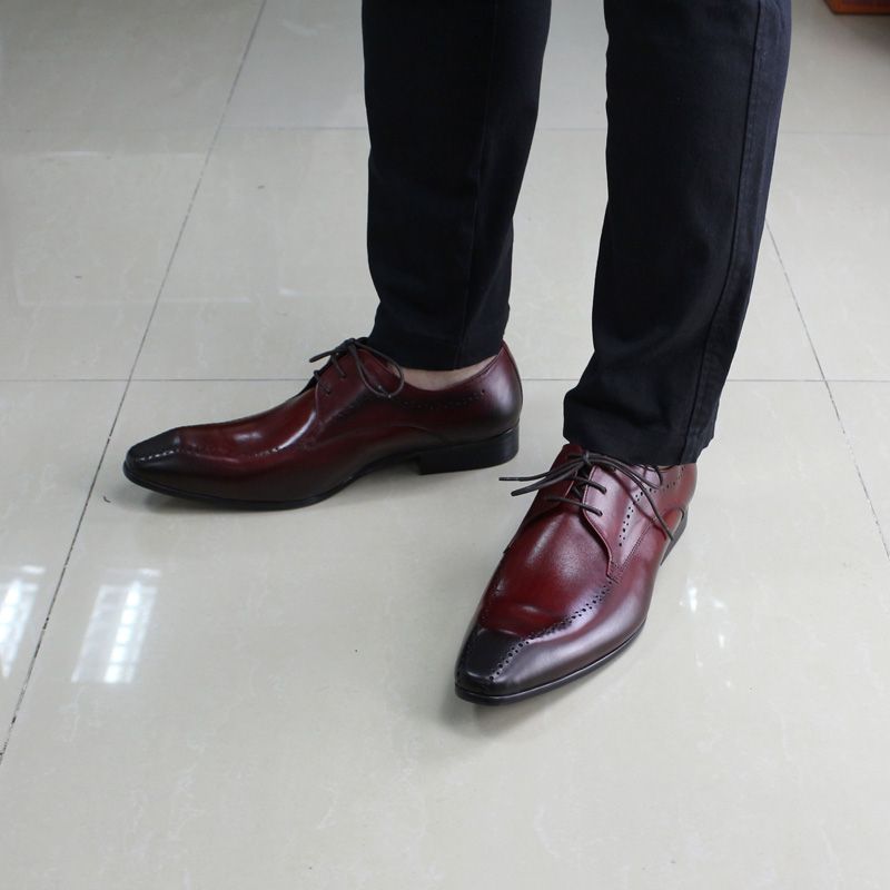 Elvis Bordeaux Modele Derby Chaussure En Cuir Pour Homme