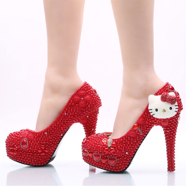 Strass Tete De Poisson Rouge Mariee De Chaussures Chaussures De