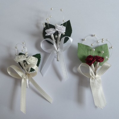 Mariage Cocarde Boutonniere Satin Blanche X10 Ref Acm443