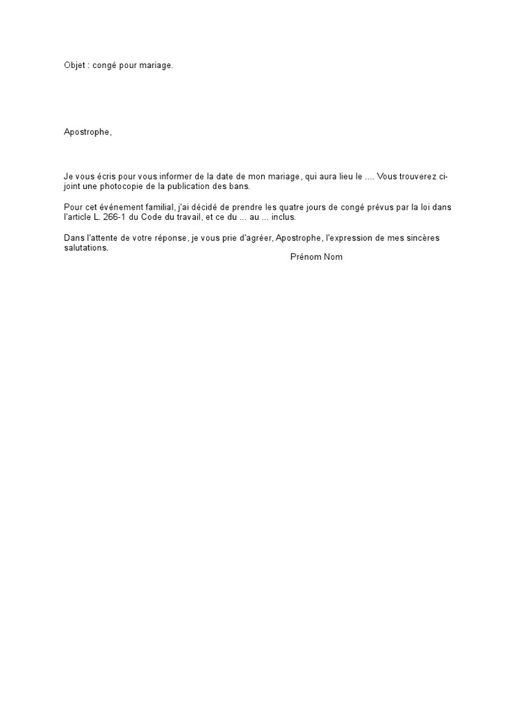 Lettre De Demande De Conges Pour Le Mariage D Un Enfant