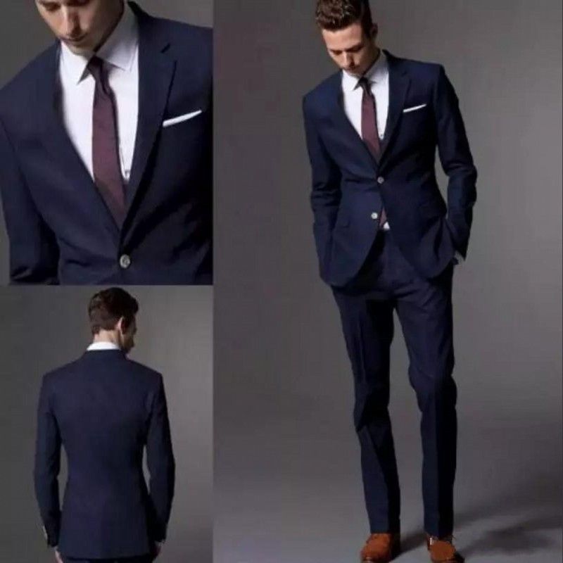 Acheter Bleu Marine Costume Homme Smokings Pour Hommes Costume De