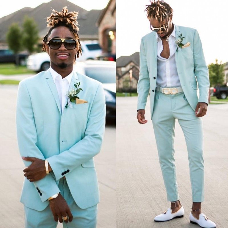 Acheter 2019 2020 Vert Menthe Hommes Costumes Slim Fit Deux Pieces