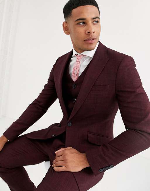 Asos Design Veste De Costume De Mariage Ajustee Bordeaux