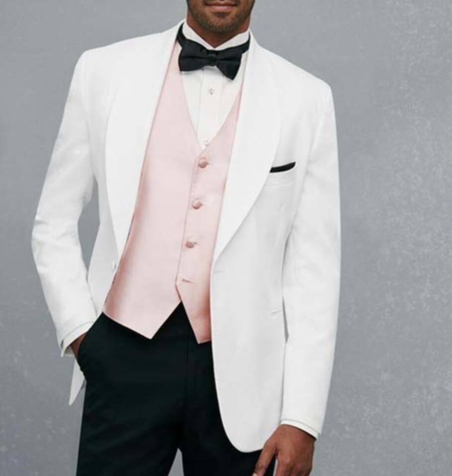 Acheter Xly 2019 Blanc Frais Costumes Pour Hommes Avec Gilet Rose
