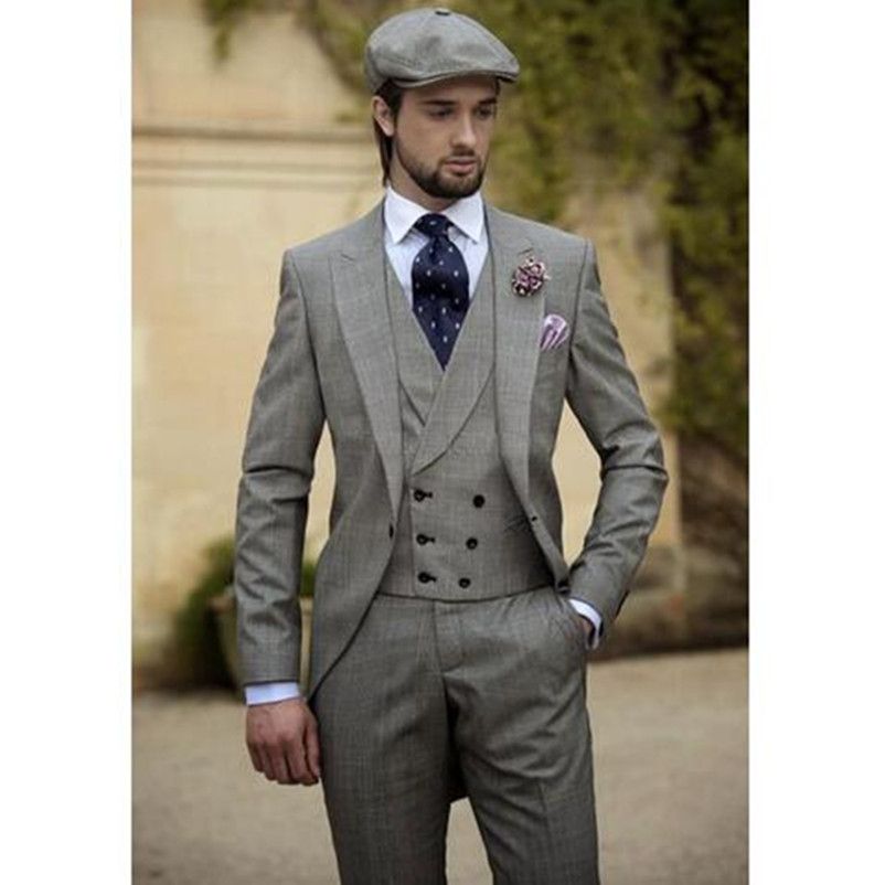 Acheter Trois Pieces Best Men Costumes Vintage Gris Smokings De