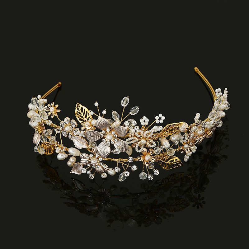 Grosshandel Gold Stirnband Blumen Perlen Kristalle Hochzeit Zubehor