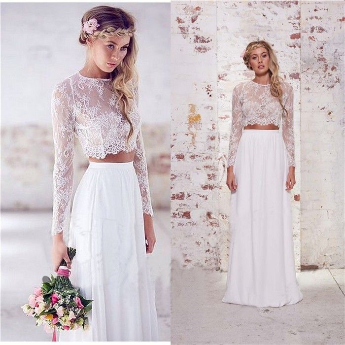 Acheter 2018 Ete Deux Pieces De Mariage Robes A Manches Longues En
