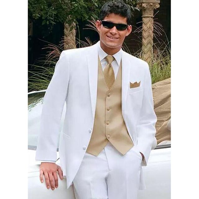 Acheter Costumes De Mariage Blanc Pour Les Hommes Gilet Or Veste