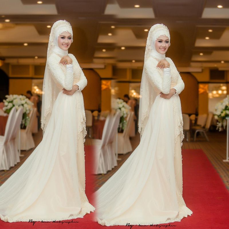 2019 Long Sleeve Muslim Hijab Wedding Dress Robe De Mariage Arabic