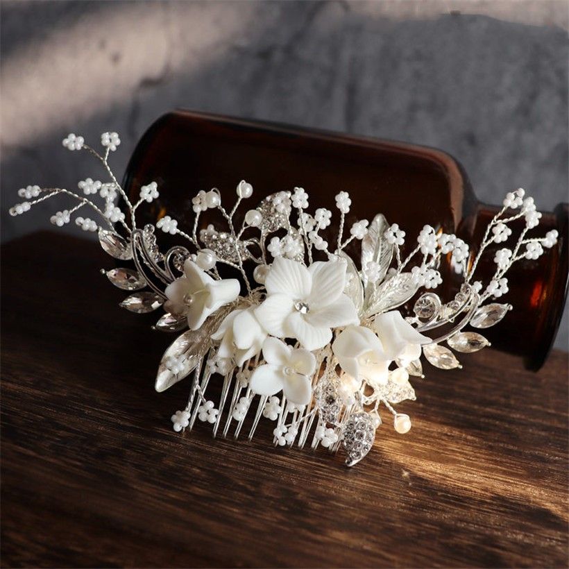 Peigne A Cheveux Mariage Fleurs Et Perles Peigne A Cheveux