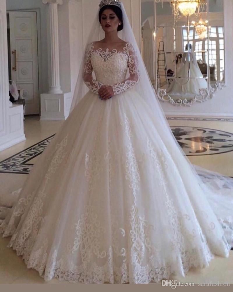 Luxe Robe De Mariage Bal Princesse A Line Avec Manche Longue