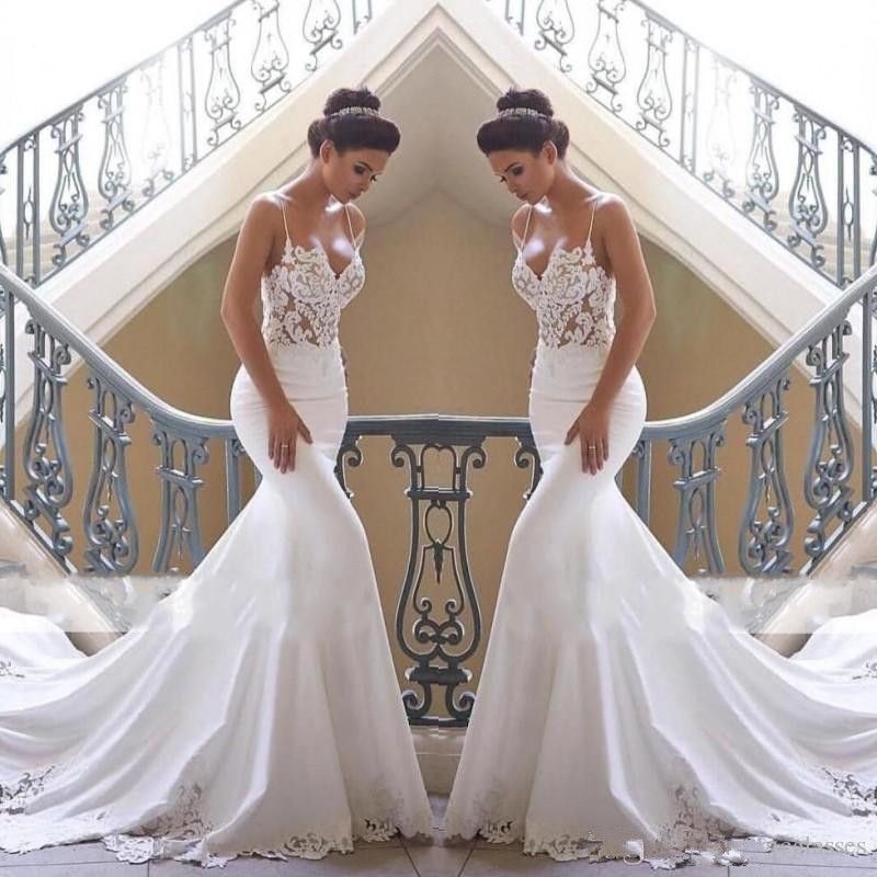 Acheter 2019 Nouveau Bretelles Spaghetti Dentelle Sirene Robes De