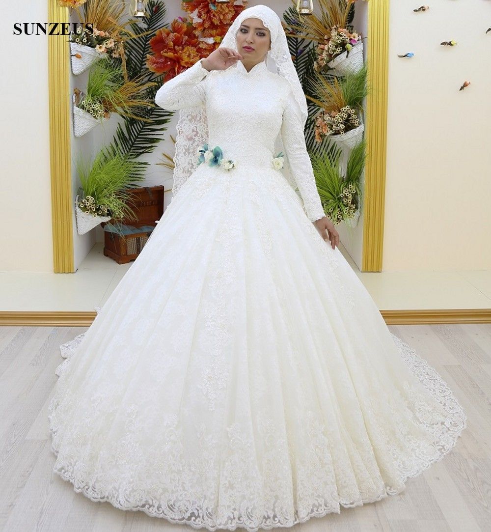 Robe De Mariage Musulman High Neck Vintage Lace Ball Gown Arab