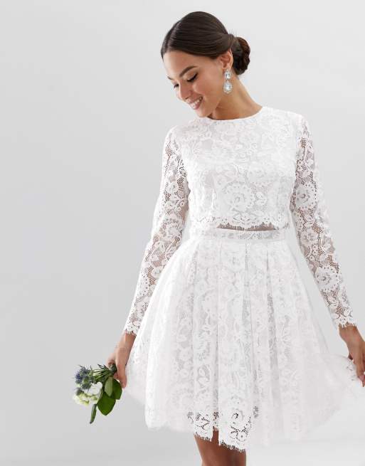 Asos Edition Robe Courte De Mariage Avec Crop Top En Dentelle Asos
