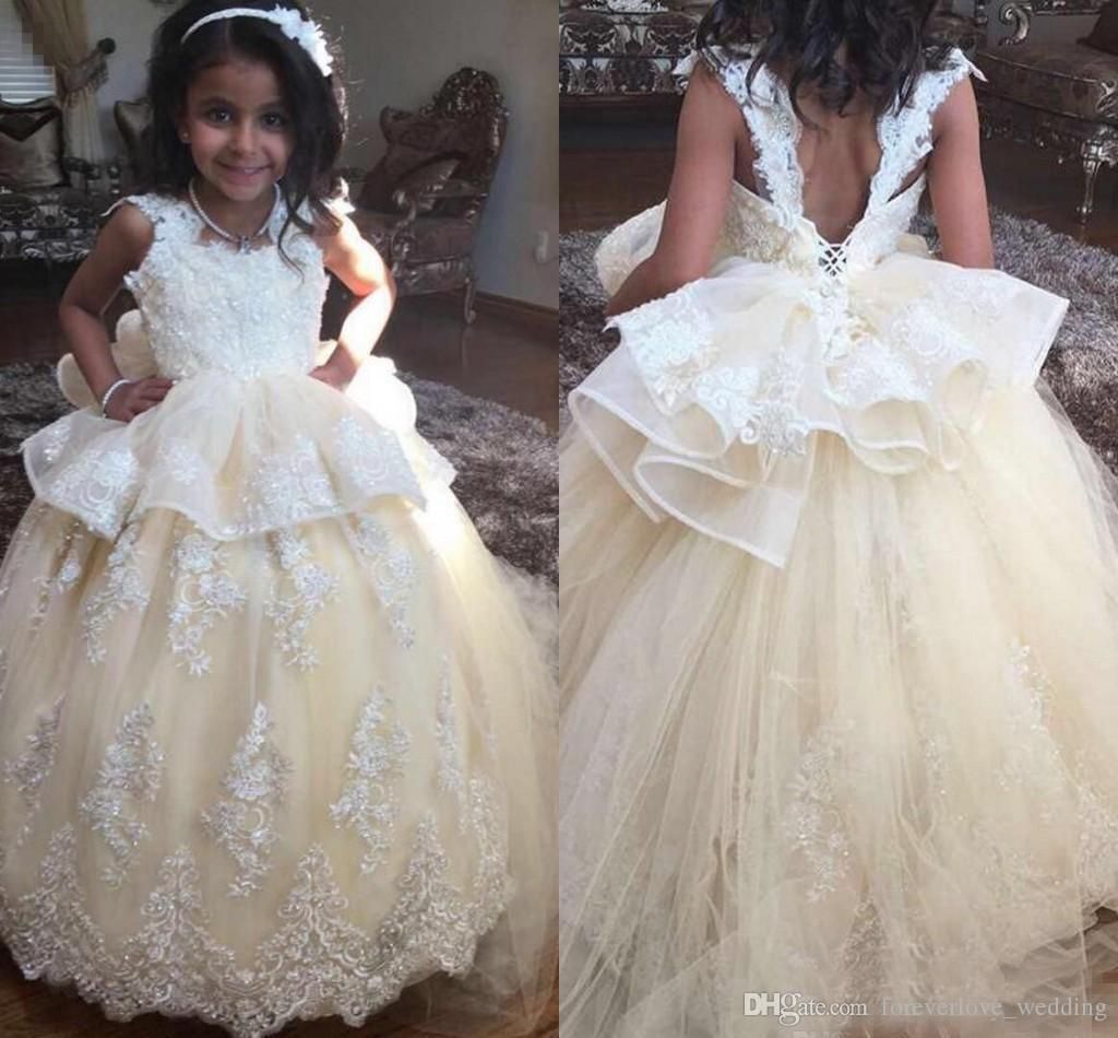 Acheter 2018 Champagne Dentelle Fleurs Filles Robes Pour Mariage