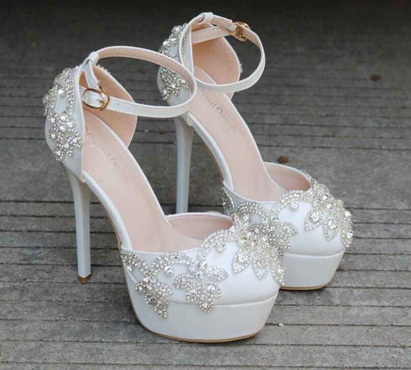 Acheter 2017 Diamant Blanc De Mariage Sandale A Talons Hauts