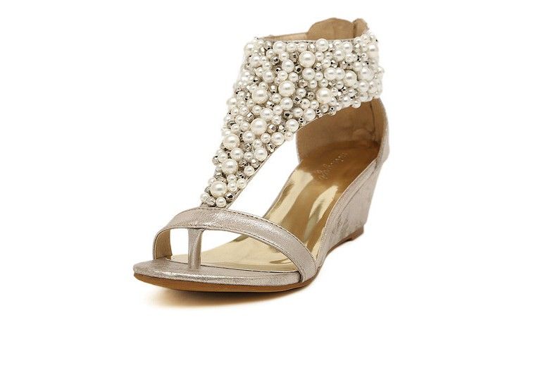Acheter Femmes Perle Romaine T Strap Sandales Compensees A Bout
