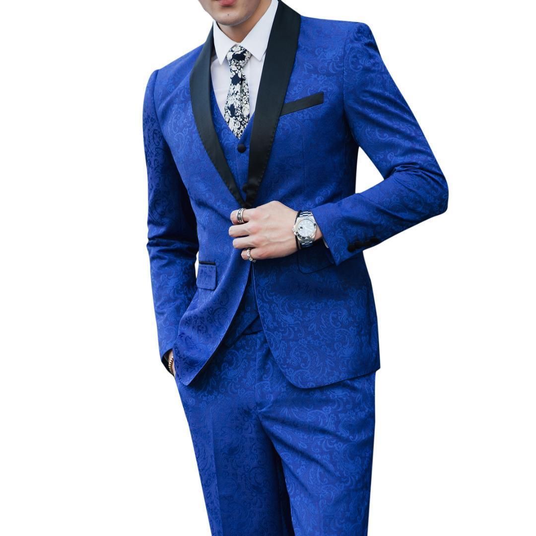 3 Pieces Royal Blue Men Tuxedo Suit Smoking Homme Mariage Traje