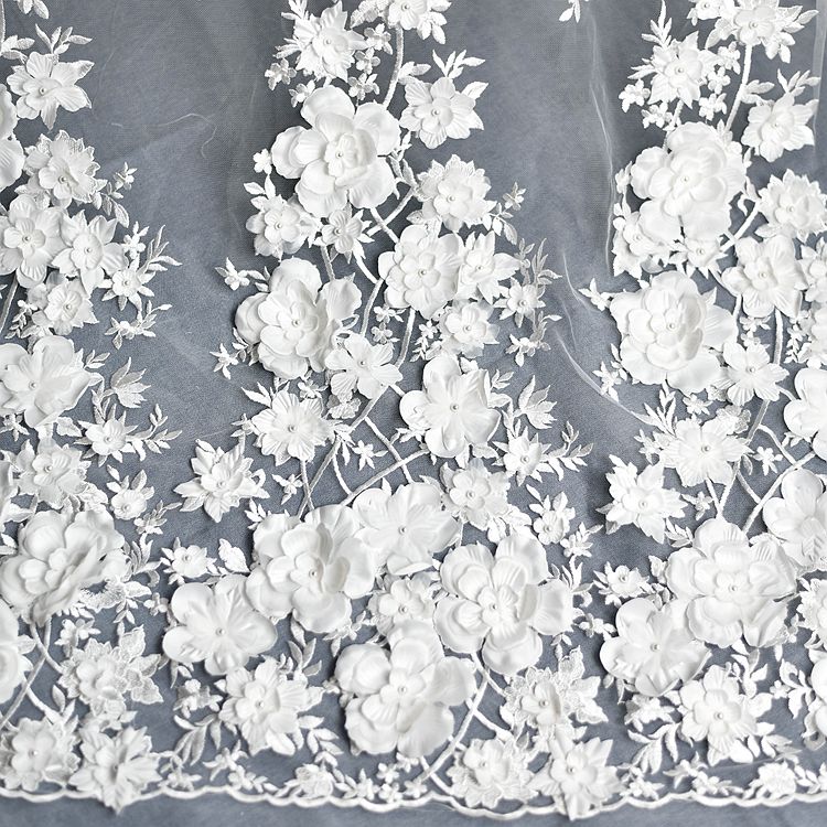 3d Fleur Blanche Mariee Brode Tulle Dentelle Tissu Perle 3d