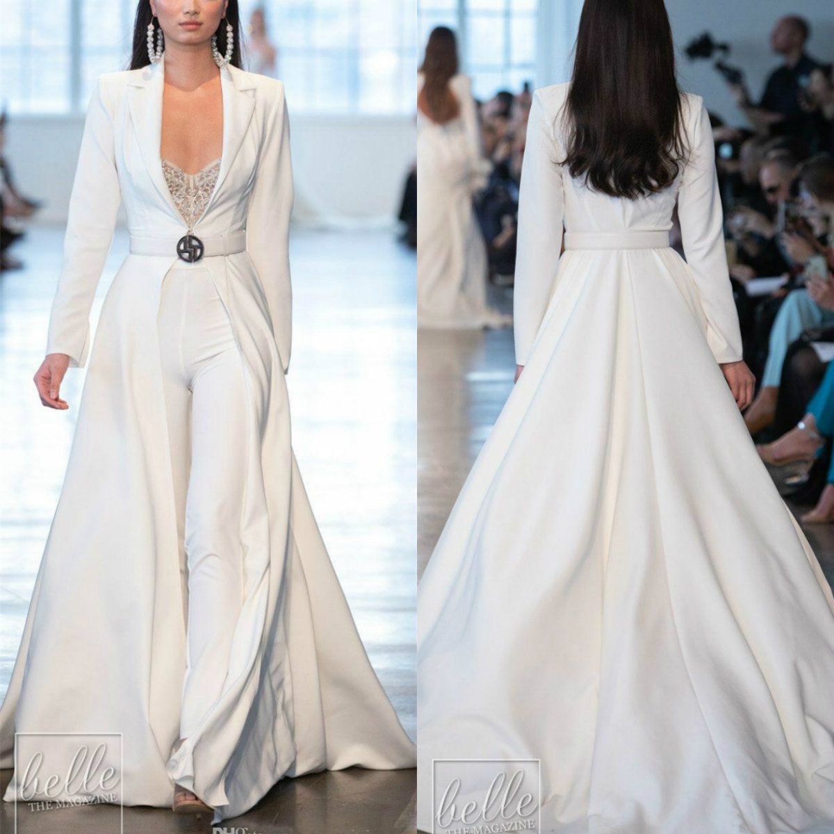 Acheter 2020 Berta Blanc A Manches Longues Tenues Satin Des Robes