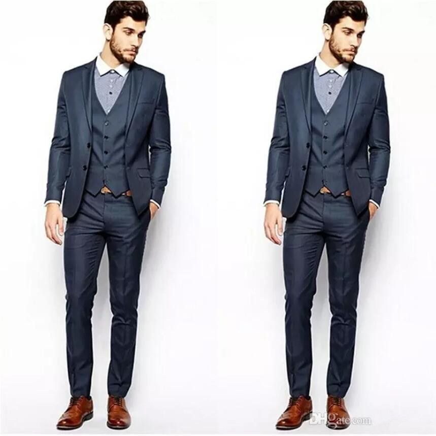 Degagement 2019 Nouveau Bleu Marine Hommes Costumes 3 Pieces